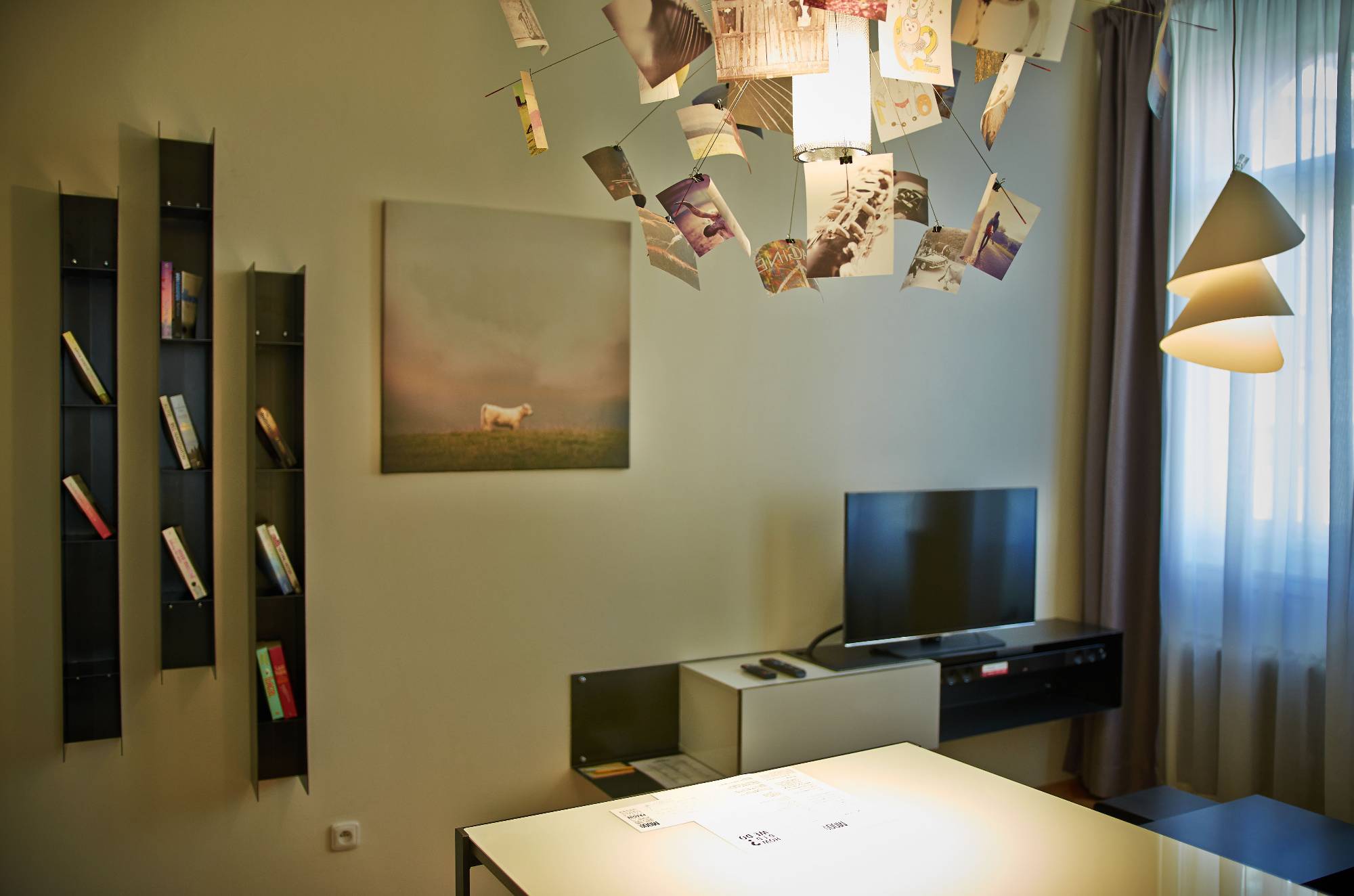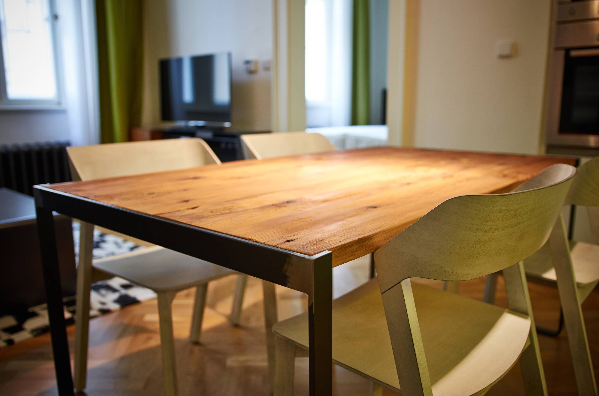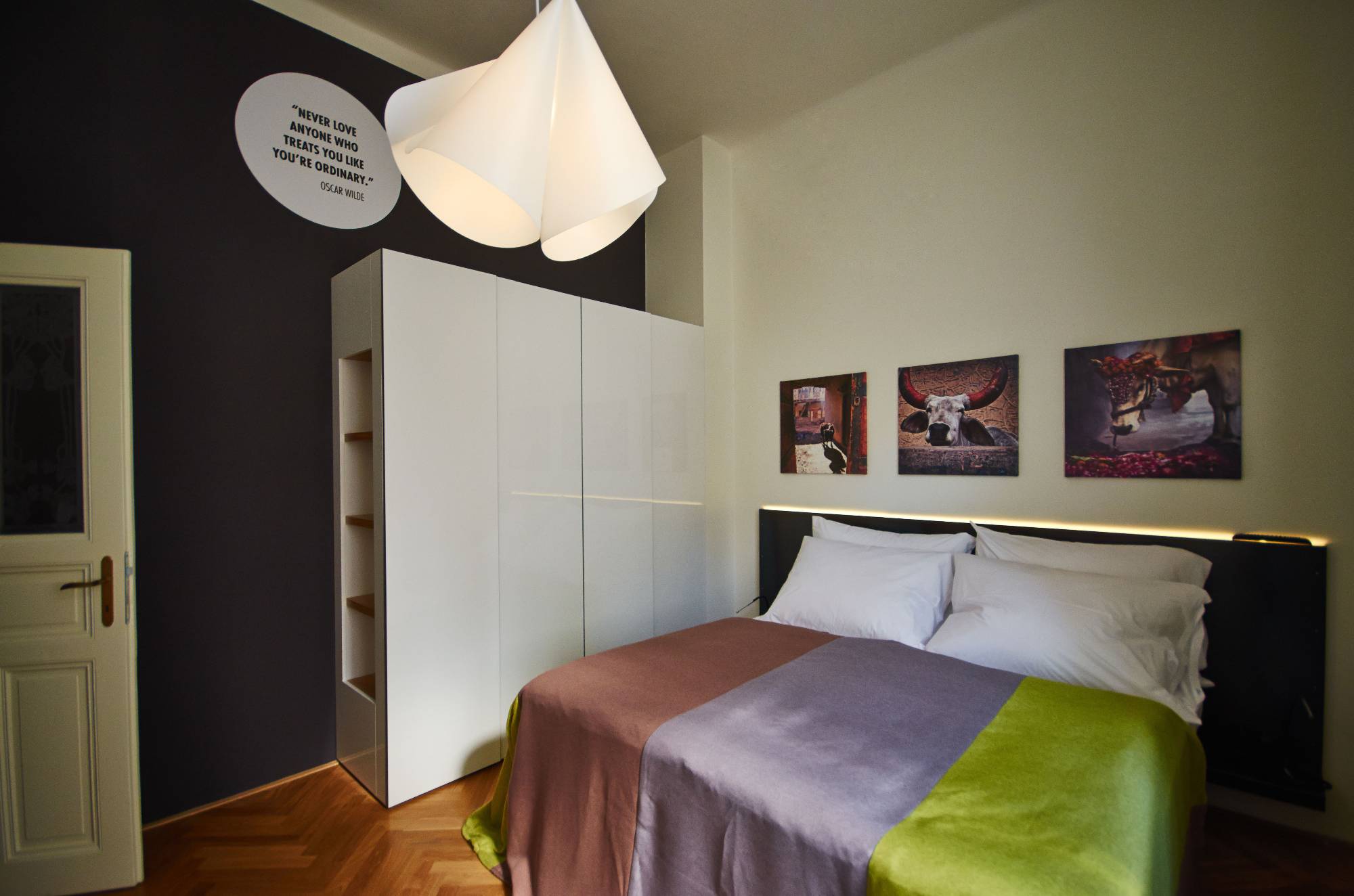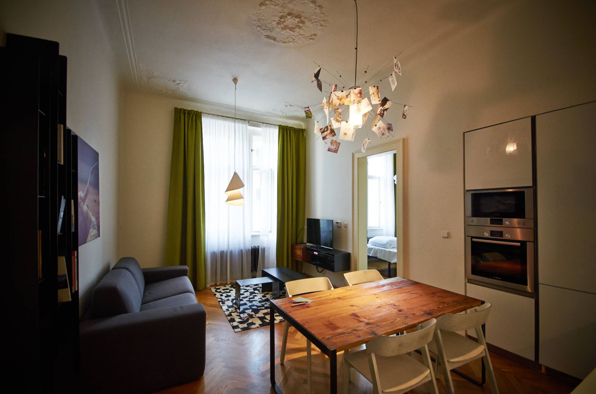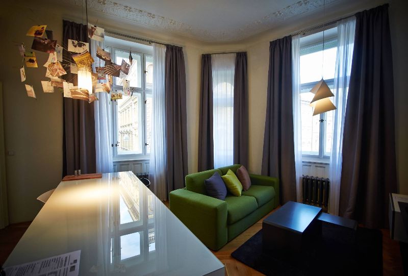 Návrh interiérů historického apartmánového objektu Myslíkova 22. Původní byty byly přestavěné na nové apartmány a kompletně vybavené. Historické apartmány jsou doplněné jednoduchým nábytkem navrženým na míru z černé oceli, mléčného skla a starého dřeva. Zbytek je ponechán v bílé a šedé barvě. Vybrané stěny jsou barvené do tabulové černé barvy a doplněné grafikou.