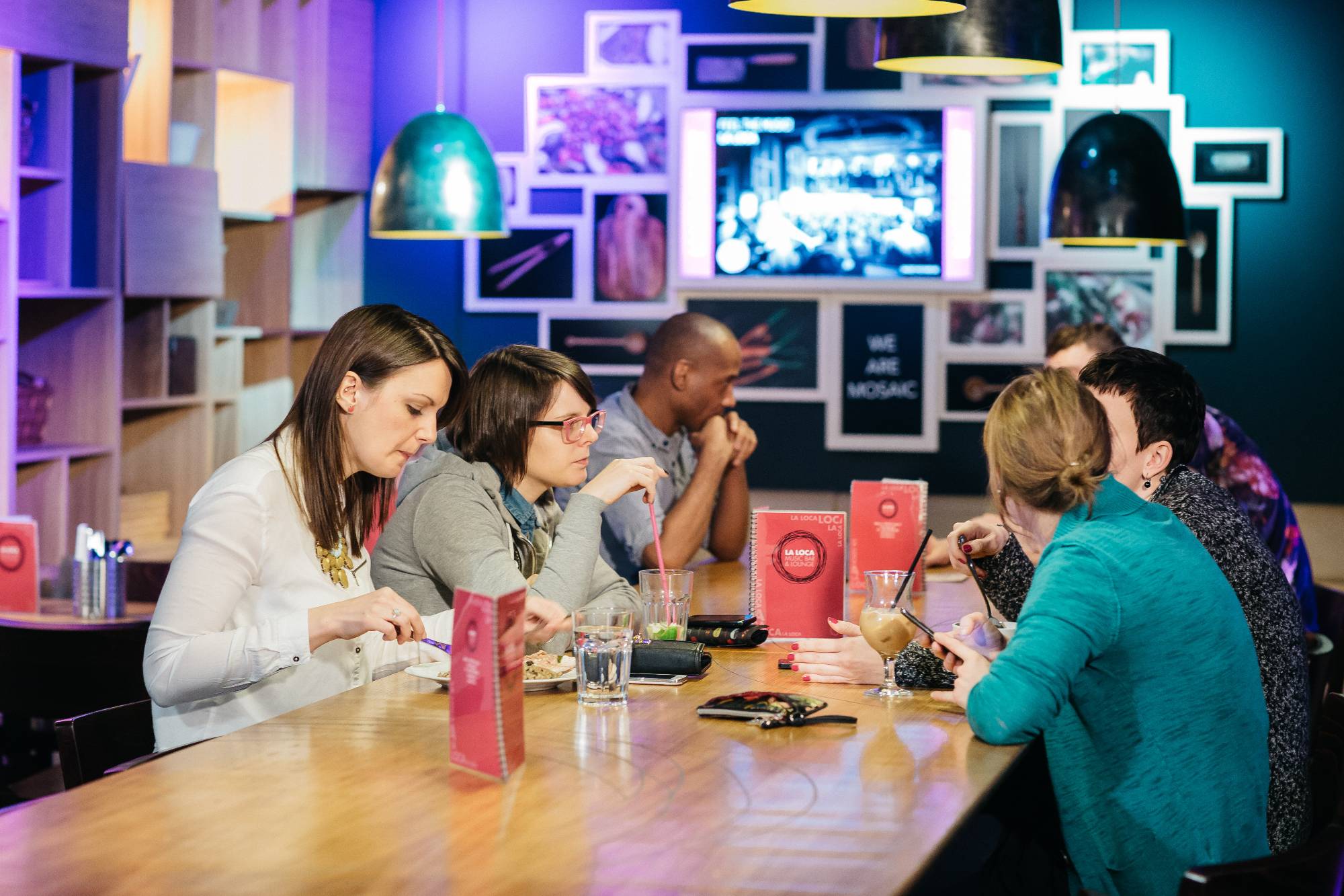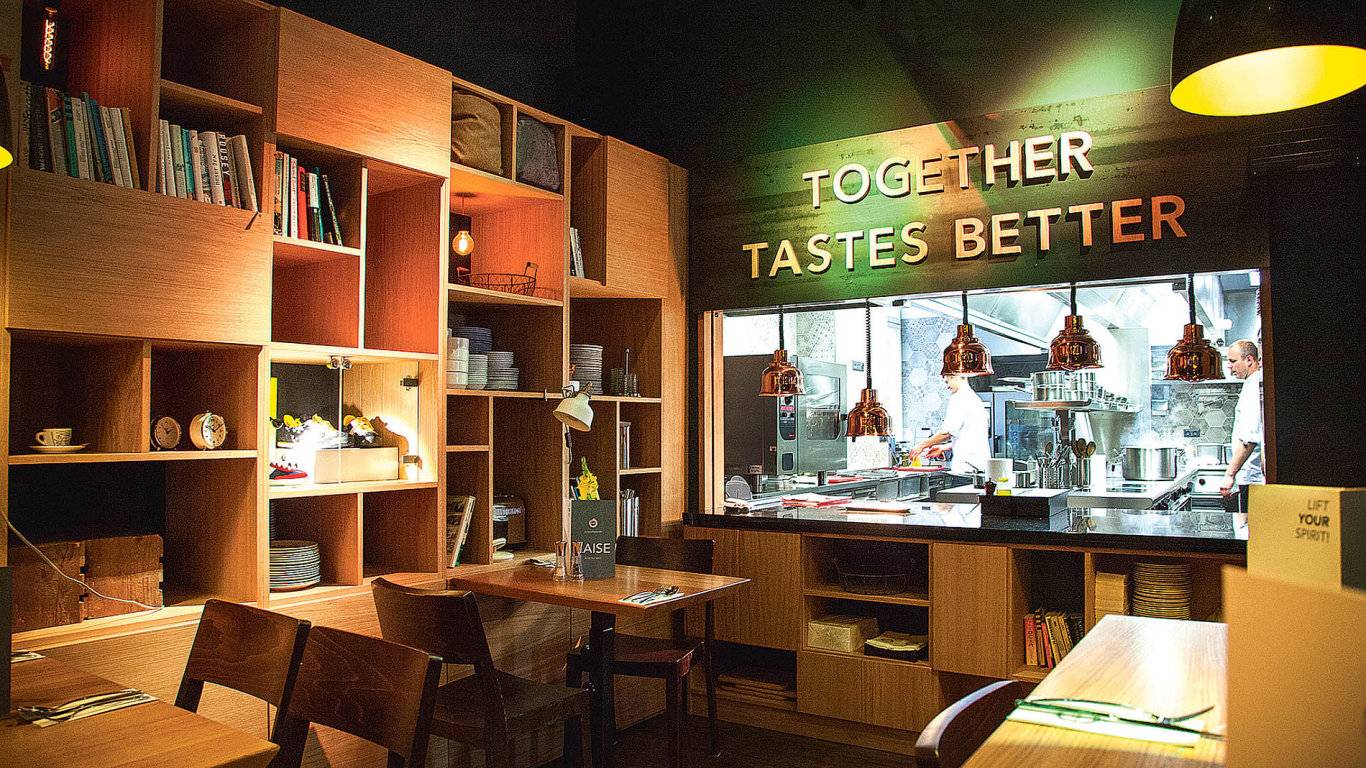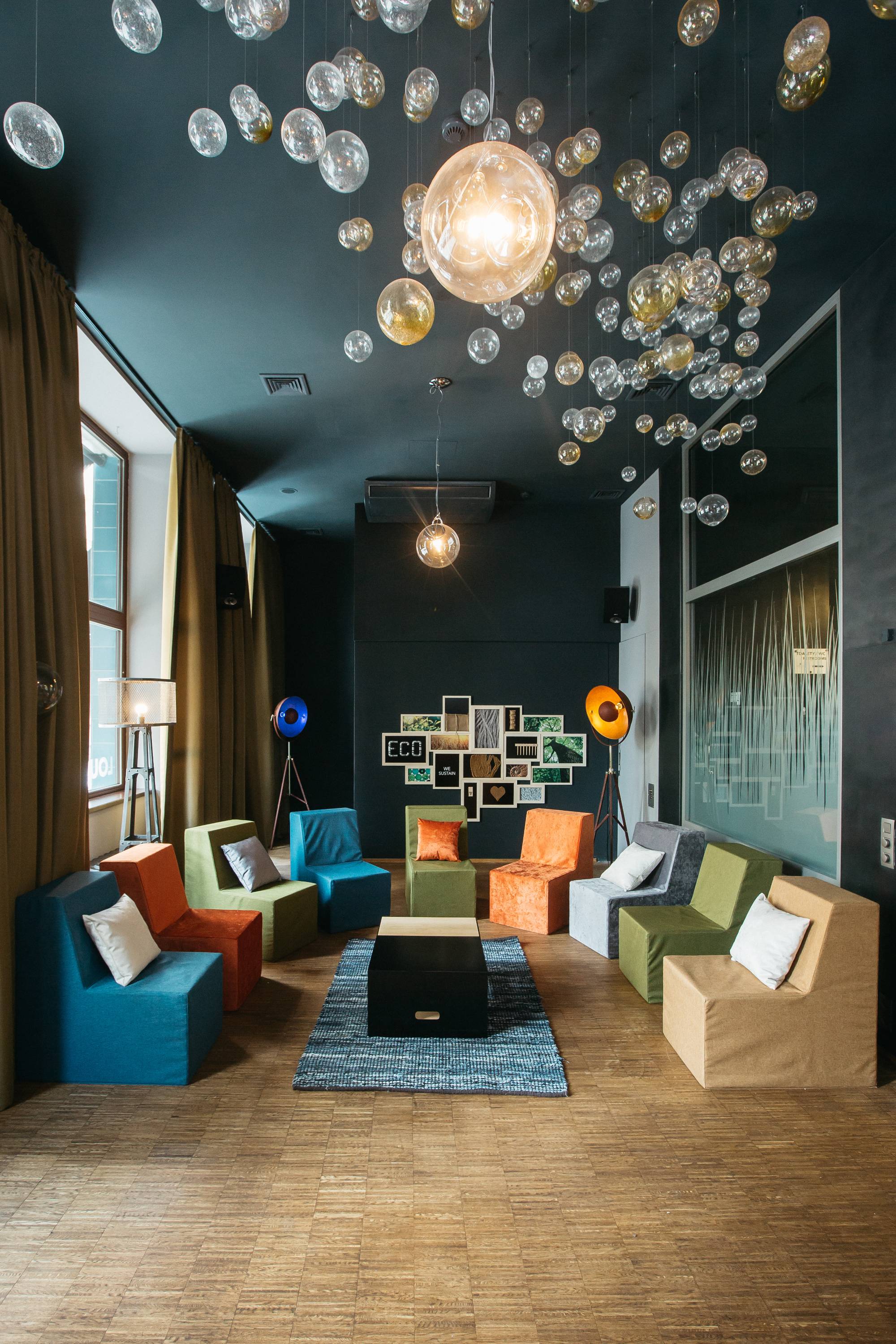 Návrh rekonstrukce přízemí hotelu Mosaichouse, ul. Odborů, Praha - Nové město. Požadavkem investora byla rekonstrukce a modernizace hotelové kuchyně. V průběhu projektu vznikly další požadavky na úpravy restaurace a dalších prostor ve vstupním podlaží hotelu. Původní interiér navržený v roce 2010 byl barevně umírněn, doplněn dřevem a šedými výmalbami. Pro lounge jsme navrhli a nechali vyrobit modulární stohovatelný sedací nábytek složený z křesel a taburetů, který může být použit pro různé typy sezení (jednání, prezentace, kino), nebo může být vyskládán ke stěnám. Dále jsme interiéry doplnili novými svítidly, námi navrženými konferenčními stolky a vyvýšeným DJ pultem pro hlavní sál.