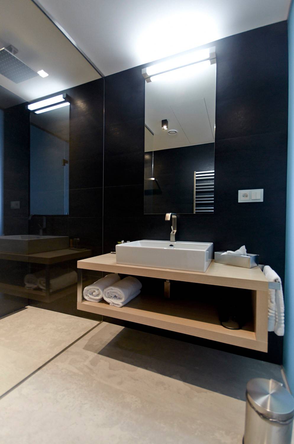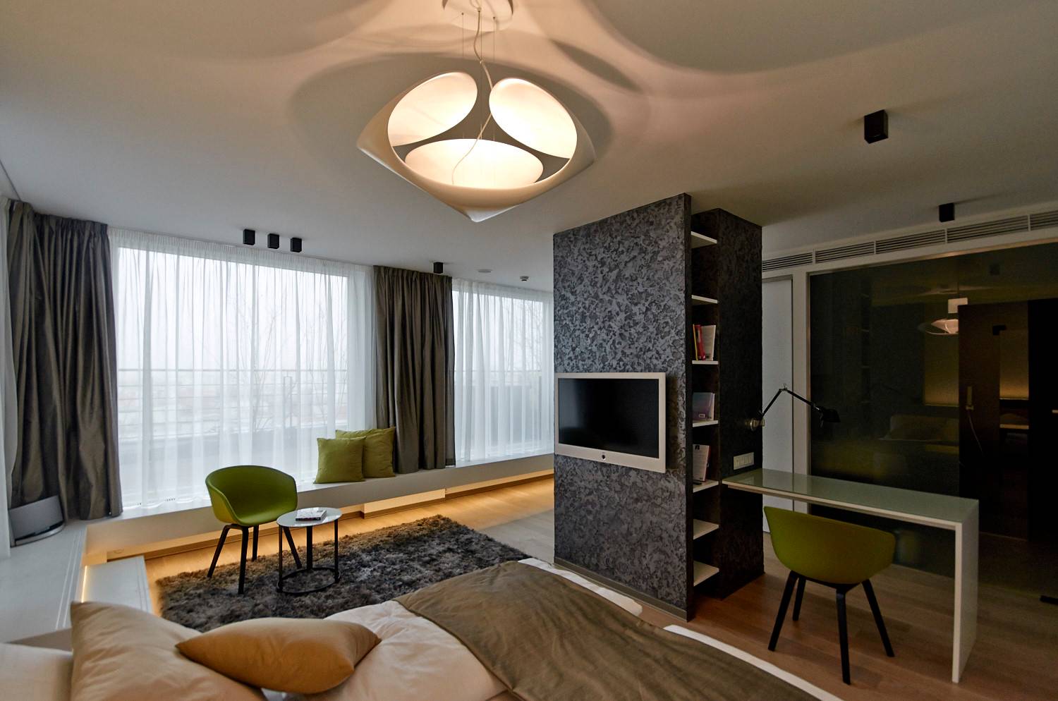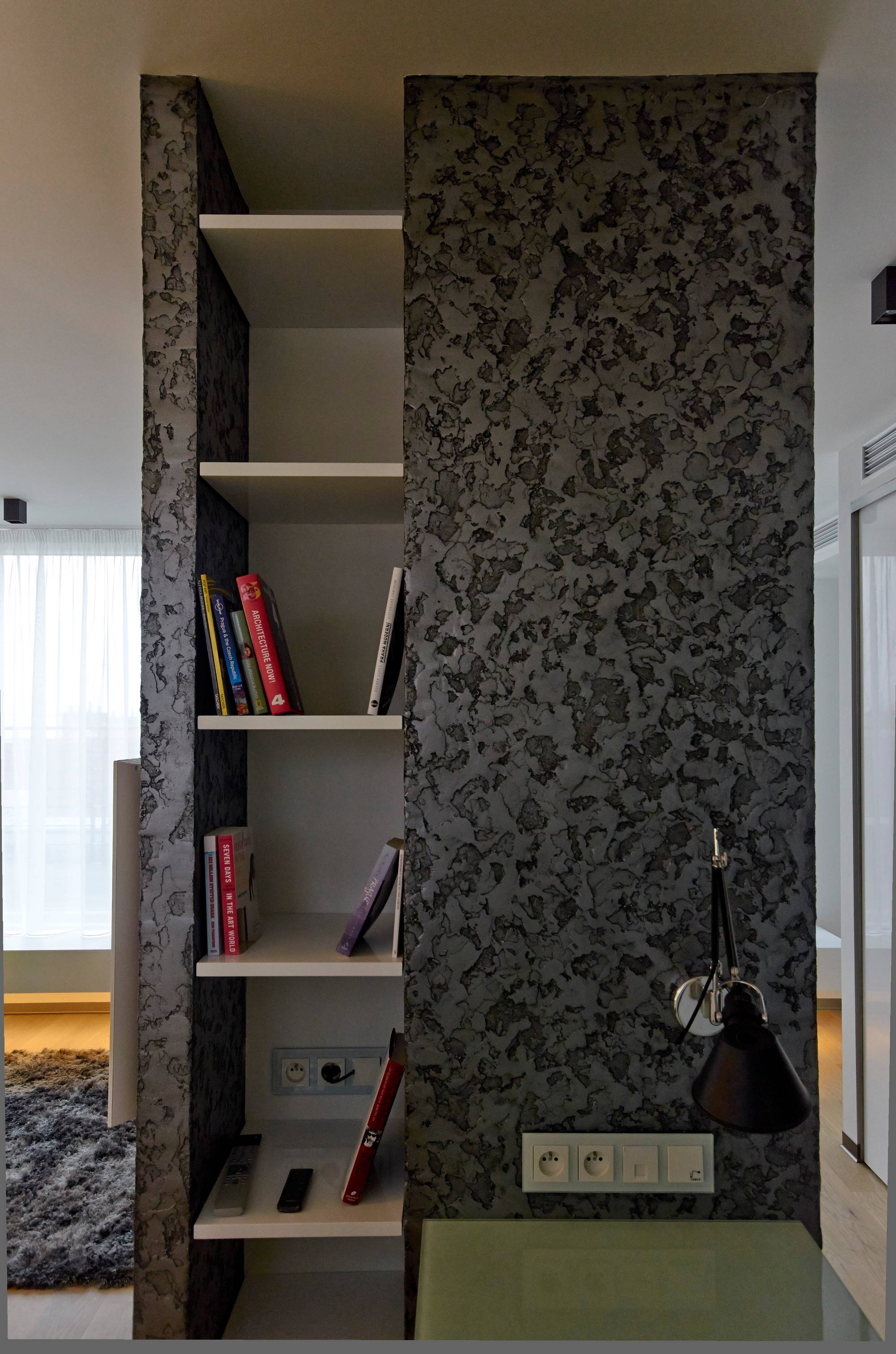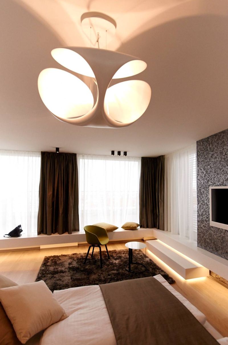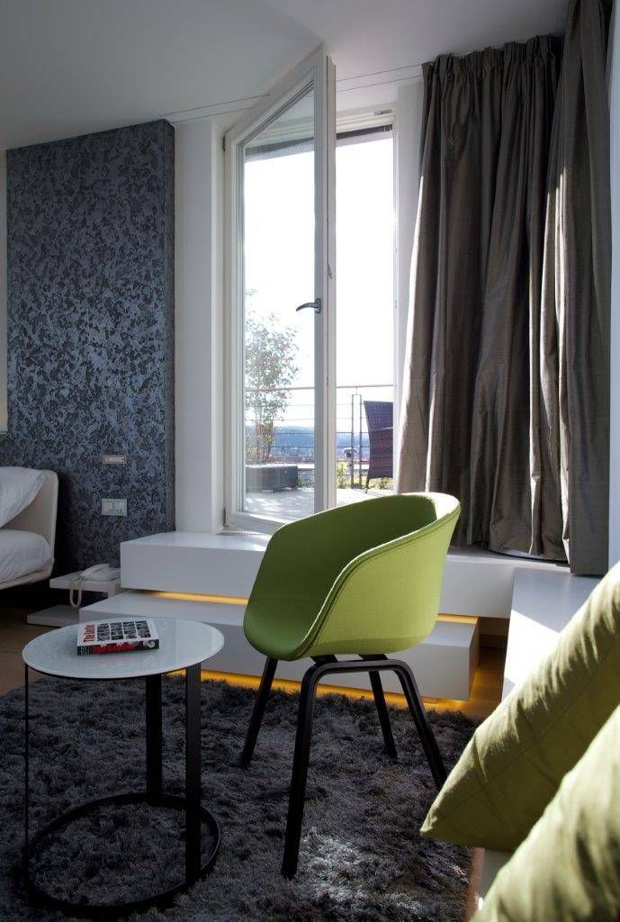 Studie a projekt interiérů a teras střešní nástavby na hotel Mosaichouse, v ulici Odborů, Praha. Dva střešní hotelové apartmány (Penthouse east a Penthouse west) byly navržené jako VIP apartmány hotelu s vlastními terasami a nádherným výhledem na Prahu a Pražský hrad přes historické střechy z Karlova náměstí. Apartmány byly navrženy v luxusních materiálech a vybavení, ale účelně tak aby splňovaly nejen funkci přespání ale i mohly sloužit jako příjemné místo pro odpočinek, nebo práci pro náročnější hosty hotelu. Podlaha je z dřevěných dubových prken, parapety jsou navržené v corianu, sloupy a části stěn z luxusní italské cementové stěrky. Koupelny jsou obložené z velkoformátových obkladů a dlažeb. Na návrhu terasy a střešní zahrady jsme spolupracovali s ateliérem Flera.